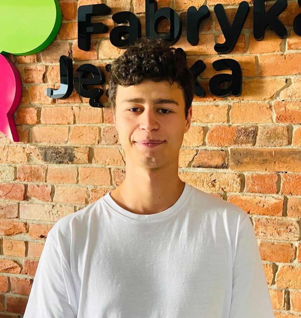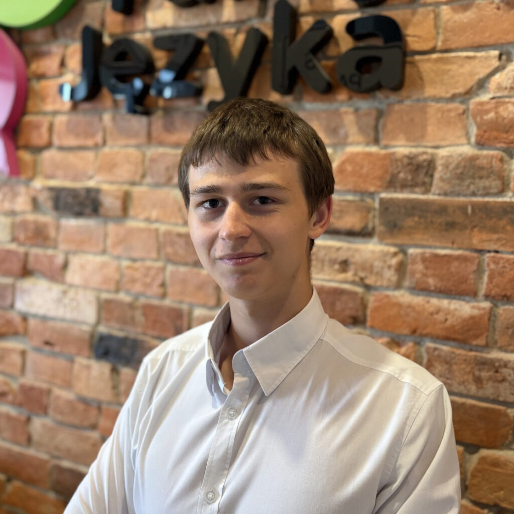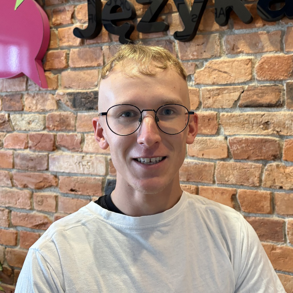 Pracuję w oddziale w Zgierzu, gdzie prowadzę zajęcia w kilku grupach wiekowych i poziomowych, co stanowi dla mnie nieustanne wyzwanie i motywację do rozwoju. Największą satysfakcję daje mi obserwowanie postępów uczniów, zwłaszcza w komunikacji, oraz momenty, gdy spontanicznie rozmawiają po angielsku. W pracy cenię możliwość dzielenia się wiedzą i odpowiadania na nawet najtrudniejsze pytania. Poza pracą pasjonuję się piłką nożną, filmami i muzyką, które często inspirują mnie także podczas zajęć.