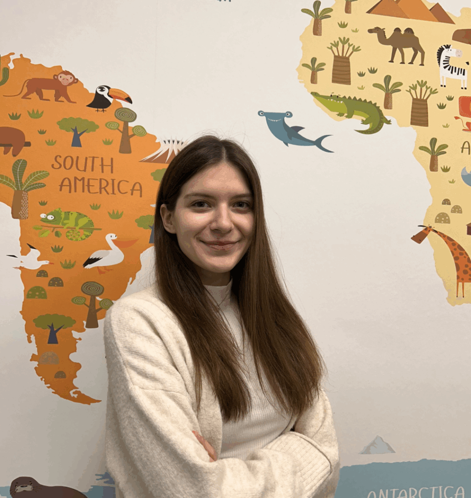 Uczę w oddziale w Ozorkowie. Najbardziej w swojej pracy uwielbiam świetny vibe – radość dzieci, ich entuzjazm i to, jak chętnie dzielą się swoimi historiami. To trochę jak mieć małych besties. Największą satysfakcję daje mi obserwowanie ich postępów i uśmiechów, gdy coś im się uda. Piątki i naklejki za dobre wyniki to najlepsza nagroda. Poza pracą kocham tańczyć, oglądać seriale po angielsku i podróżować. Poznawanie nowych kultur to moja największa pasja.